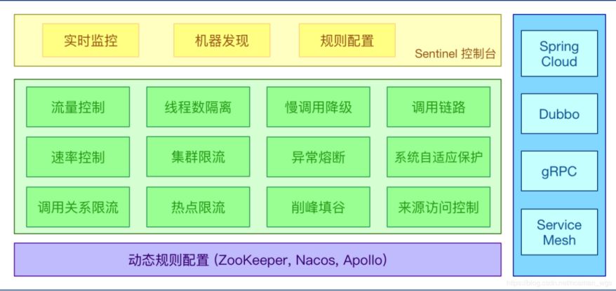Sentinel 是阿里开源的项目,提供了流量控制、熔断降级、系统负载保护等多个维度来保障服务之间的稳定性。